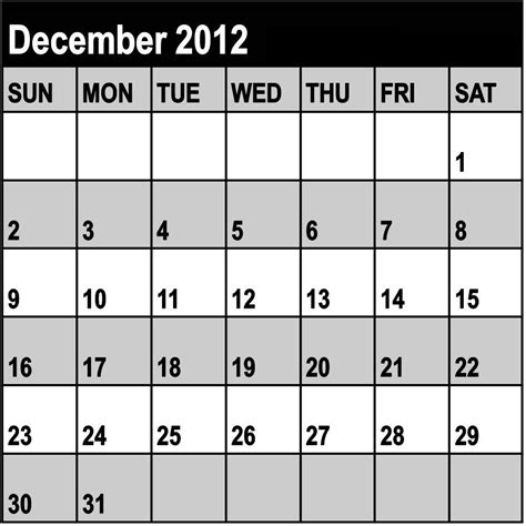 Free Calendars 2015, Bookmarks, Cards December 2012 Blank Calendar